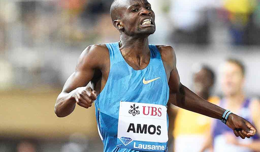Botswana’s 800m sensation, Nijel Amos has taken mobile phone operator, Orange Botswana, to task over its unlawful use of his photo on their merchandise.